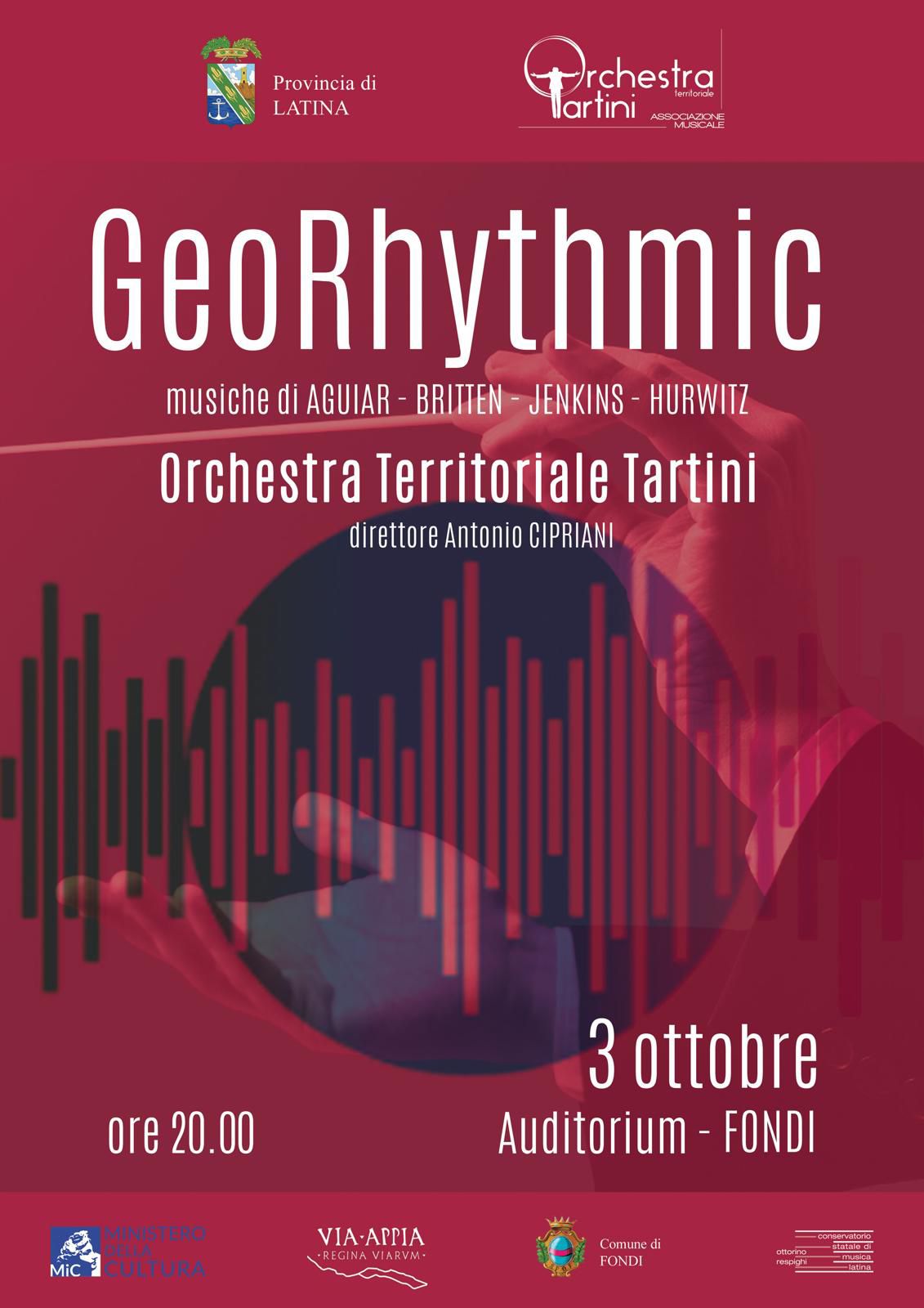 Nuovo straordinario appuntamento con la musica a Fondi dove venerdì 3 ottobre, con inizio alle 19:30, presso l’auditorium comunale “Sergio Preti” si esibirà l’Orchestra territoriale “Tartini” di Latina diretta dal Maestro Antonio Cipriani. GeoRhythmic, questo il titolo del concerto, sarà un viaggio nello spazio e nel tempo.