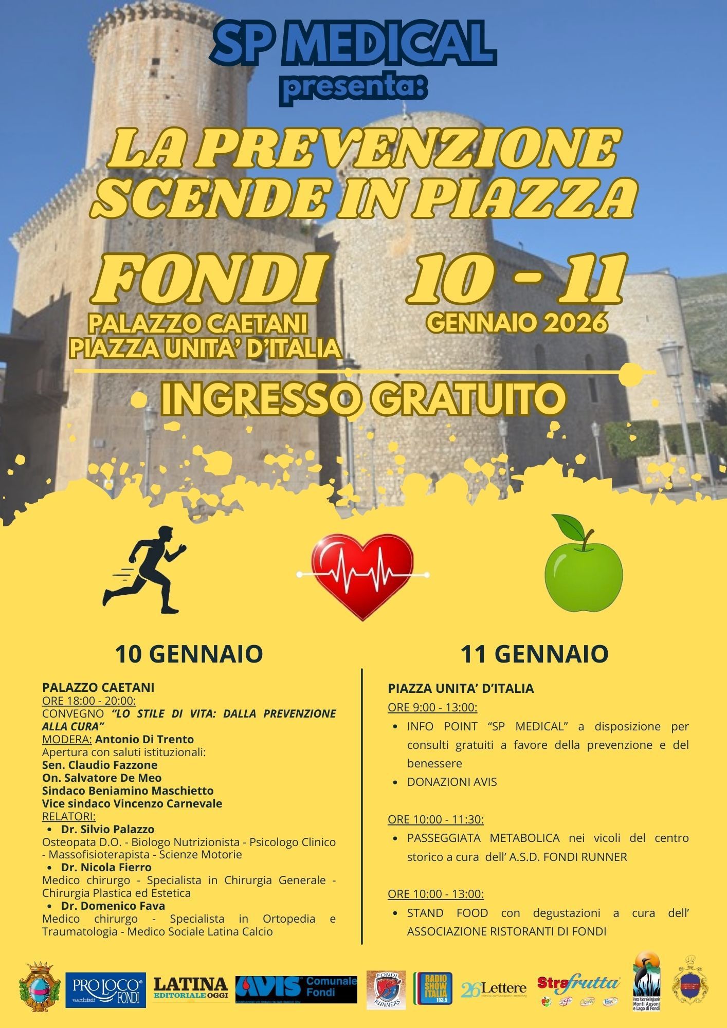 Sabato 10 e domenica 11 gennaio 2026 arriva a Fondi “La prevenzione scende in piazza”, l’iniziativa ...