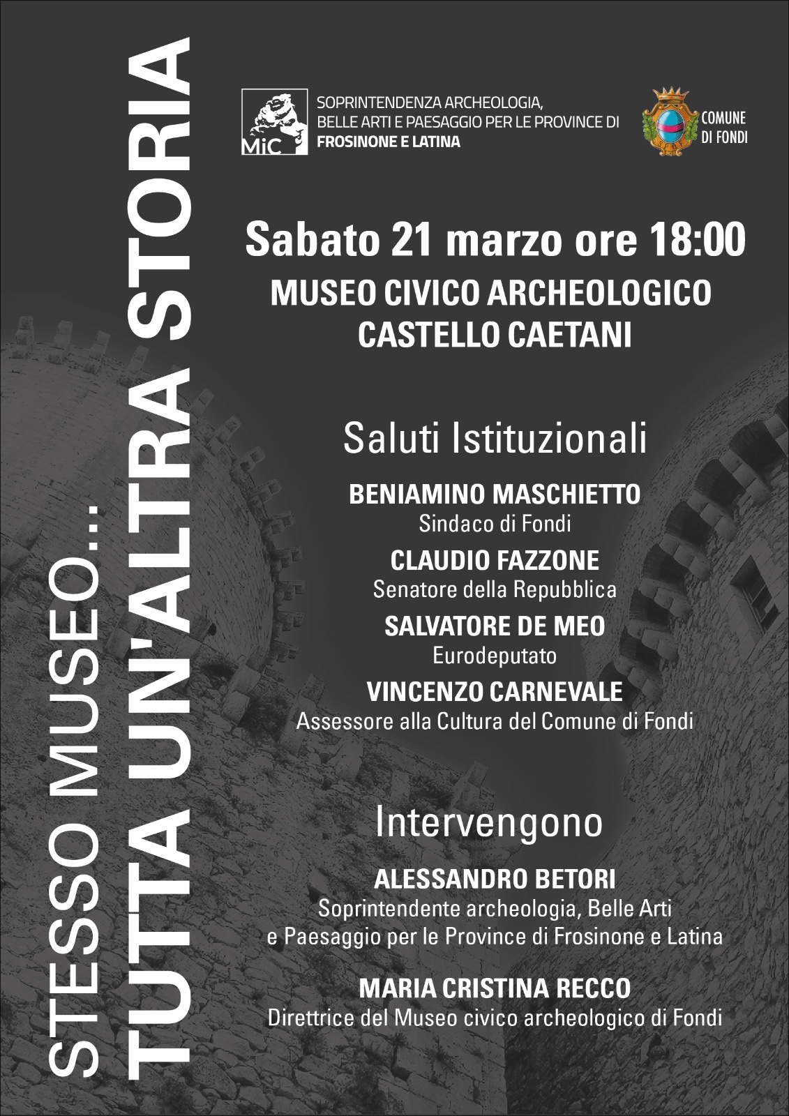 Per celebrare il restyling del Museo civico archeologico Città di Fondi è stato quindi organizzato un grande evento di presentazione durante il quale interverrà il Soprintendente archeologia, belle arti e paesaggio per le province di Frosinone e Latina Alessandro Betori.